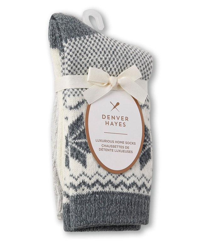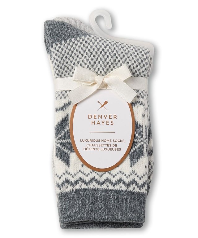 From Denver Hayes, these socks are supersoft and comfortable. They feature added Spandex to improve the fit. Knitted in a classic Nordic pattern, they have non-chafing toe seams and rib-knit cuffs to keep them up where they belong. We offer these socks in a package of two pairs for easy shopping.