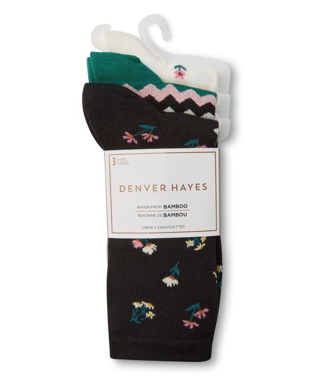In three different patterns, our Denver Hayes crew socks are made of rayon derived from bamboo for the softest comfort. We added a little stretch to provide a better fit and smooth toe seams that won't cause irritation.