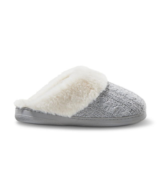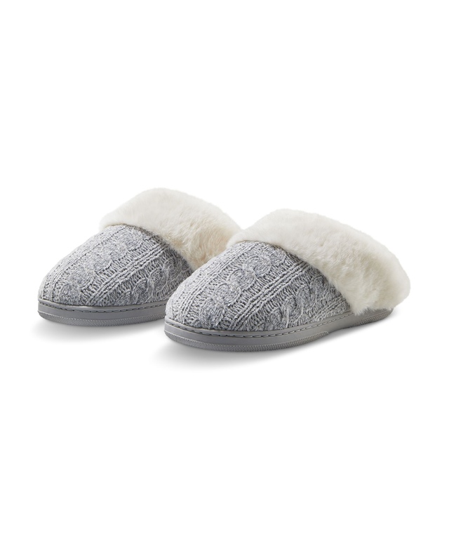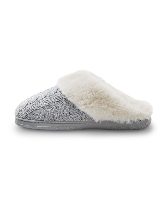 The cable-knit pattern gives our Denver Hayes slippers their traditional look. Designed to keep your feet warm and cozy all winter long, these slippers have a faux fur collar and lining.