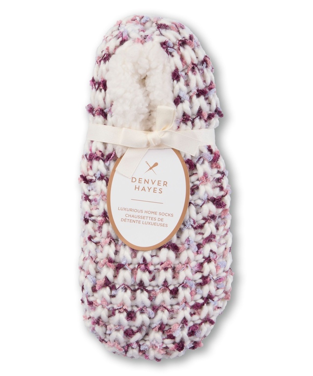 Our Denver Hayes Chunky Dye socks are knitted in a textured pearl stitch with a space-dyed pattern. Faux sherpa linings will keep your feet warm and cozy and silicone grippers make it safer to walk on slick flooring.