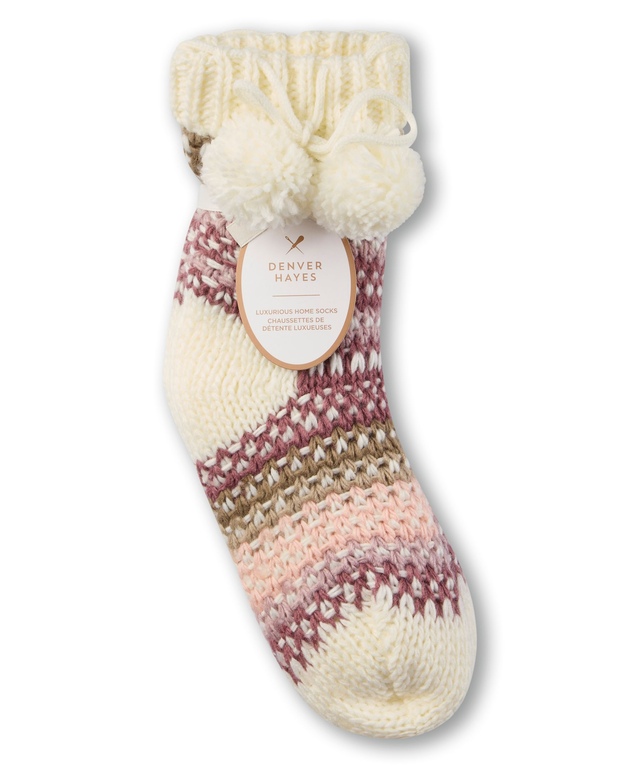 Lounge around the house comfortably wearing our Denver Hayes chunky knit socks. They're lined in faux sherpa for extra warmth and gripper-printed soles help you stay safe on slippery floors.