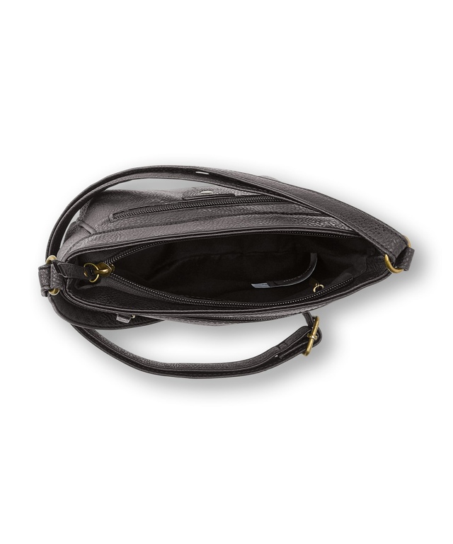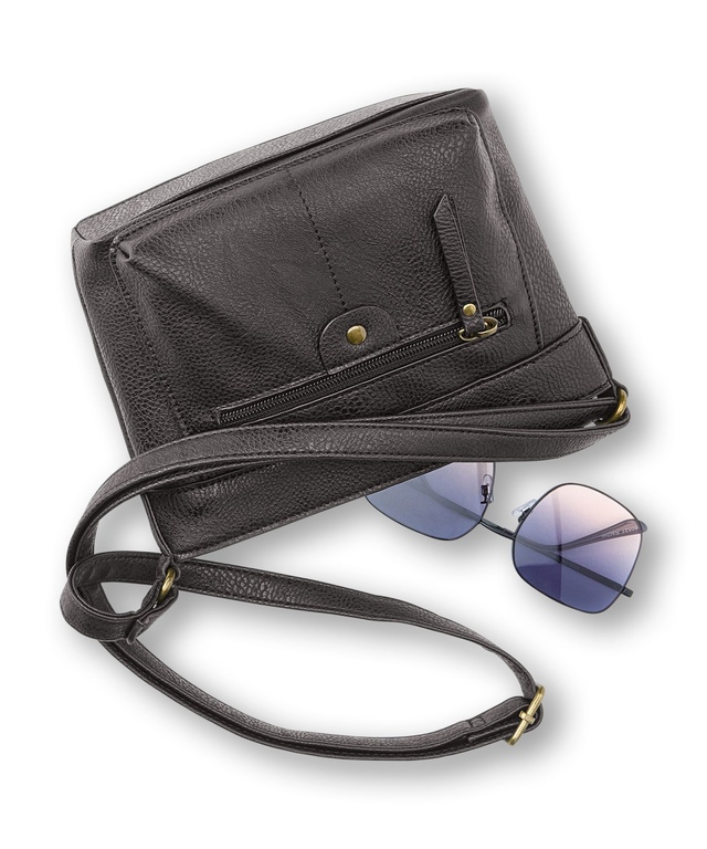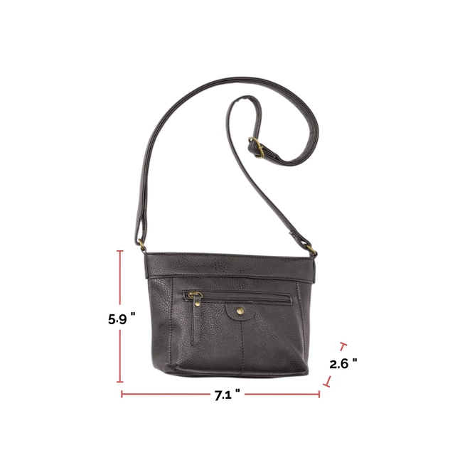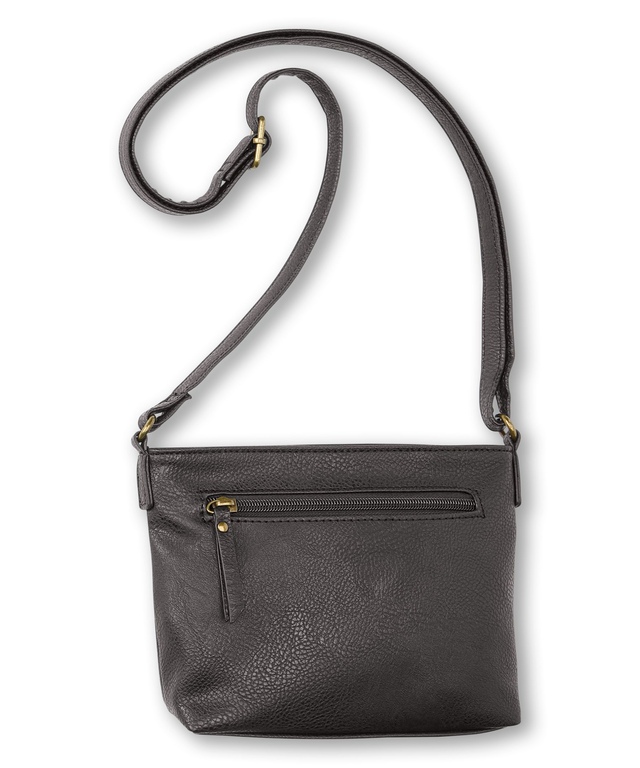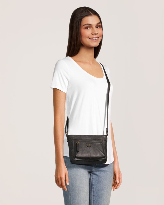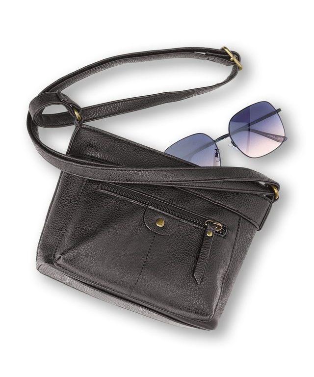 This Denver Hayes leather-look crossbody bag is the perfect size for the small essentials you carry with you every day. It has a zippered main compartment with a zippered pocket inside and another on the front. This bag has a long adjustable strap so you can wear it crossbody or hung over one shoulder.
