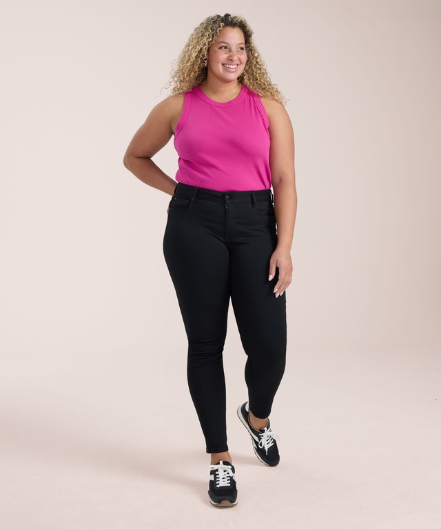 I have a wide hip/small waist ratio and these fit really good! It’s hard to find curvy cuts. These black ones have a little more stretch to them than the indigo blue jean version but both are great and good quality. I also really like the mid rise cut so there’s no butt crack issues!