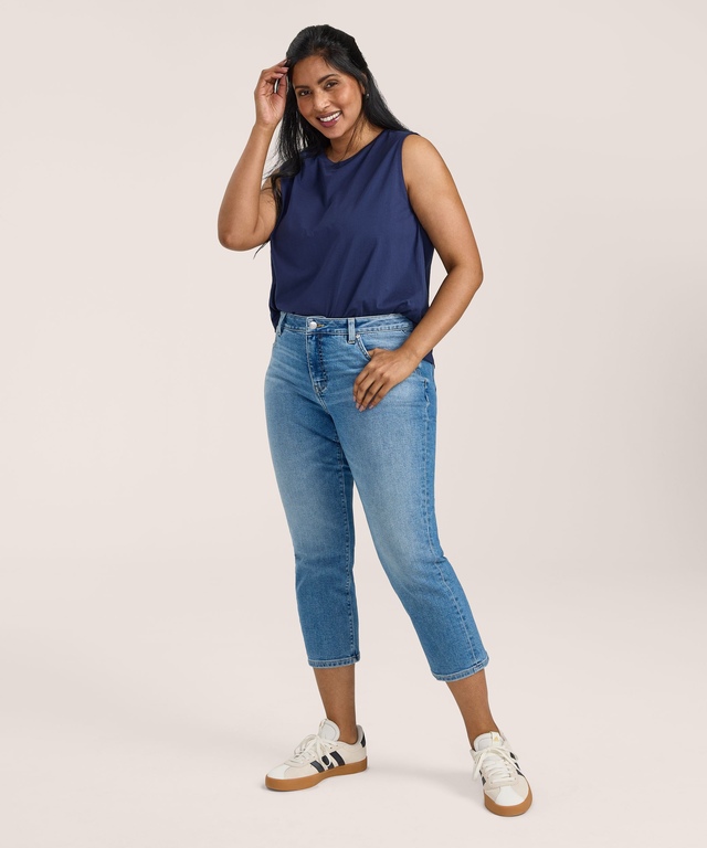 These Denver Hayes slim leg cropped jeans are designed for a body with curves and provide a little extra room through the hip and thigh. Featuring front tummy-slimming pockets and a contoured waistband to prevent any gapping, with stretch for that perfect fit.