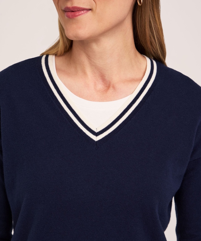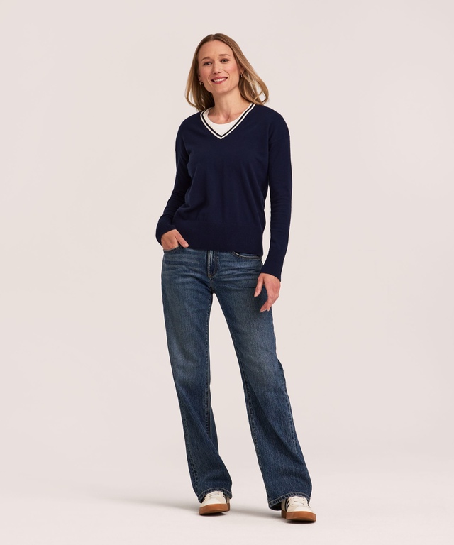 Our Denver Hayes V-Neck Sweater fulfills so many needs. Of course, it adds warmth when you need it, but it can easily change your look as well. Worn alone, it presents a neat and trim look. A cami peeking out at the lower neck adds a feminine touch. It's an all-season lightweight sweater that's so versatile, you'll be wearing it often.