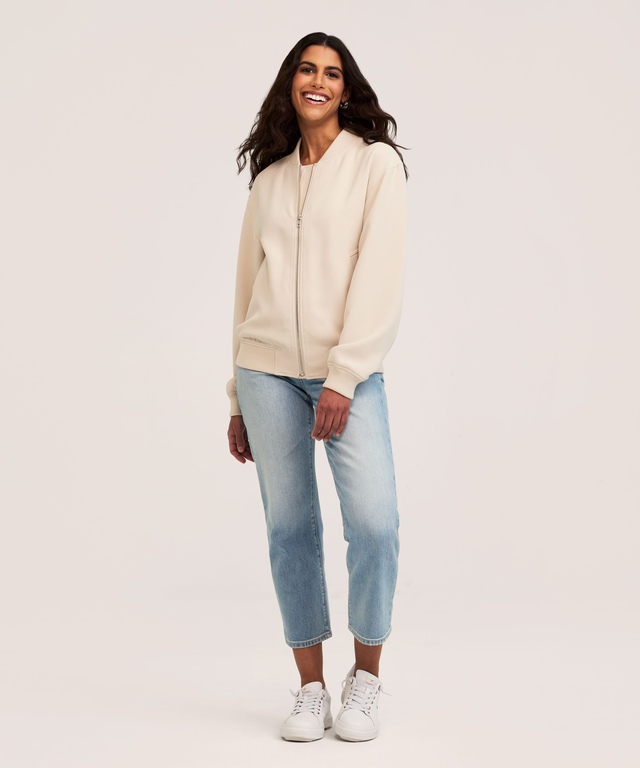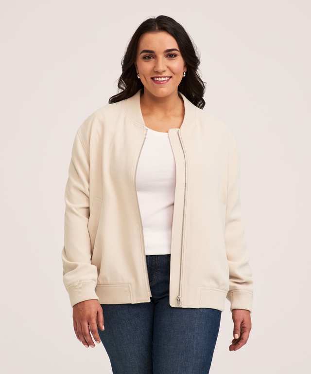 From Denver Hayes, a fashion-forward version of the bomber jacket. This one is ideal for all your everyday activities and it's perfect for layering over tees, camis and pants.