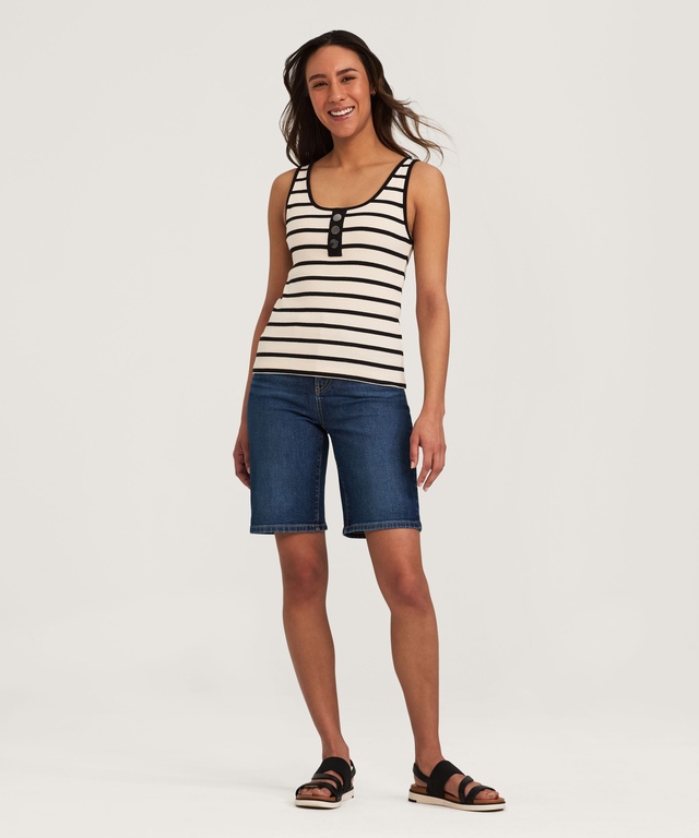 Decorated with large metal buttons on the front placket, this Denver Hayes tank top will add a little bling to summer outfits. It's made in a heavyweight fabric to elevate the fitted style. Whether you wear it loose or tucked into your waistband, this tank gives you a great summer look.