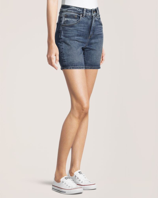 Our Denver Hayes women’s high-rise mid-length Jeans shorts have the perfect amount of stretch to contour and shape your curves. The combination of the contoured waistband and innovative tummy slimming front pockets enhance your figure.