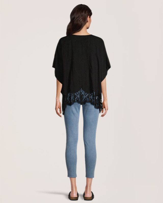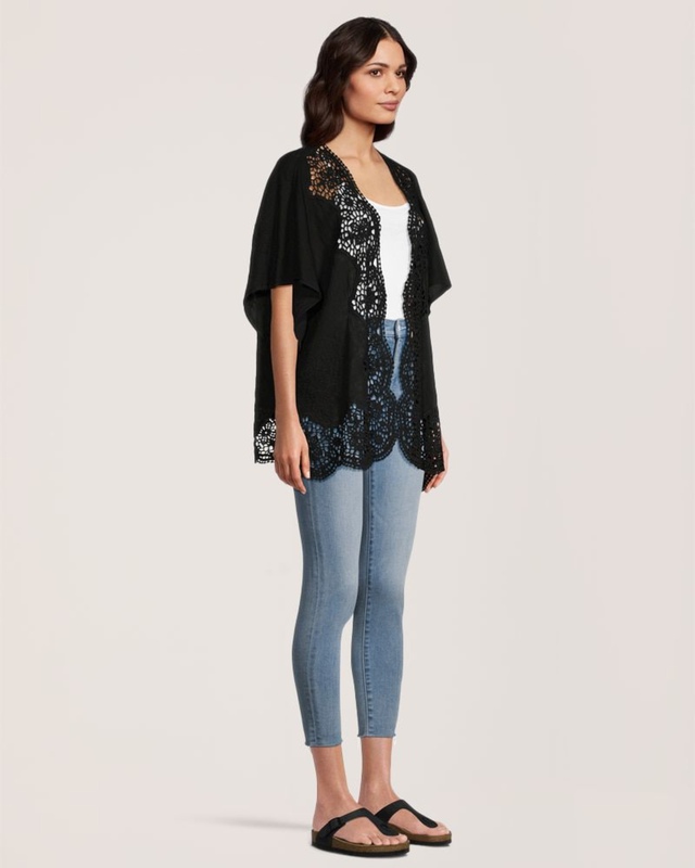Ultra feminine and exceptionally pretty, our Denver Hayes ruana has wide lace edging. The lightweight coverup is perfect for summer events. Wear it over a tank and jeans or a dress for a variety of activities.