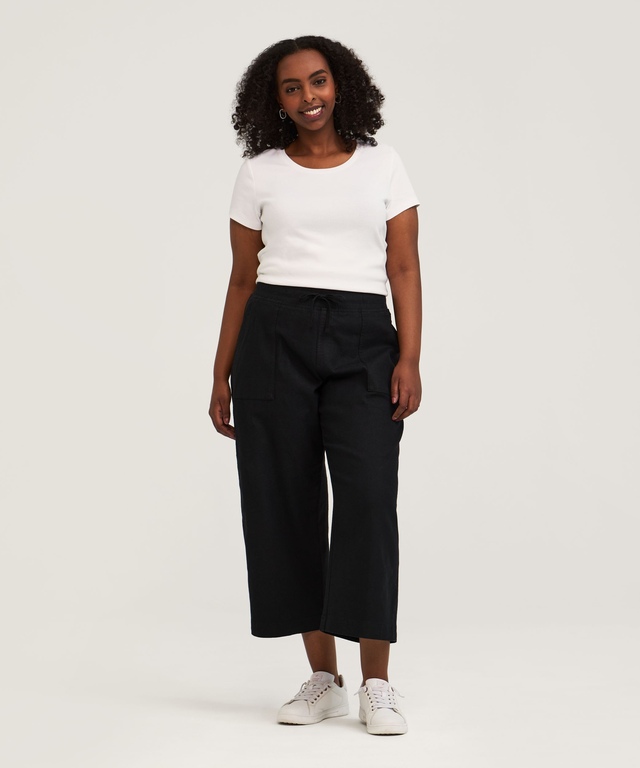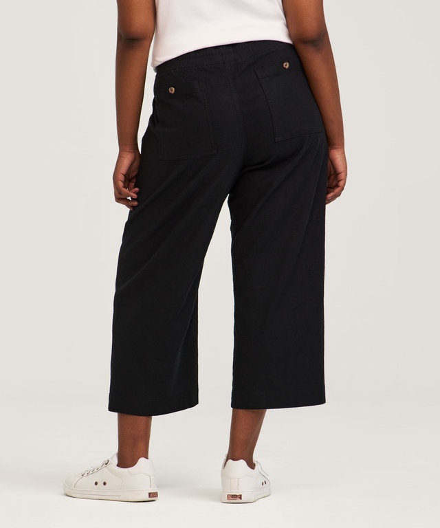 Linen is the perfect fabric for summer comfort. It's naturally breathable to help you feel cooler and our linen fabric is specially blended to provide stretch for greater comfort and easier care. These Denver Hayes pants have an easy pull-on elastic waistband and pockets front and back for your small stuff. Wide cropped legs make these pants a trendy choice for your fine weather wardrobe.