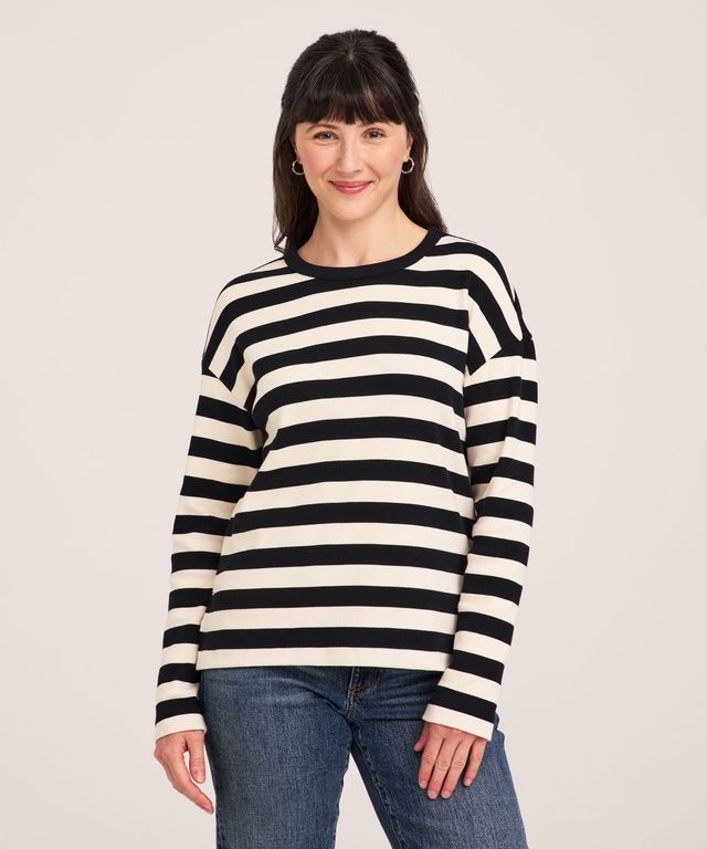 We can't think of a time when stripes won't be in vogue! This Denver Hayes top is made for extreme comfort in a heavyweight cotton knit and a relaxed fit. Wear it with your favourite jeans or trousers and it will get you through the day with ease.