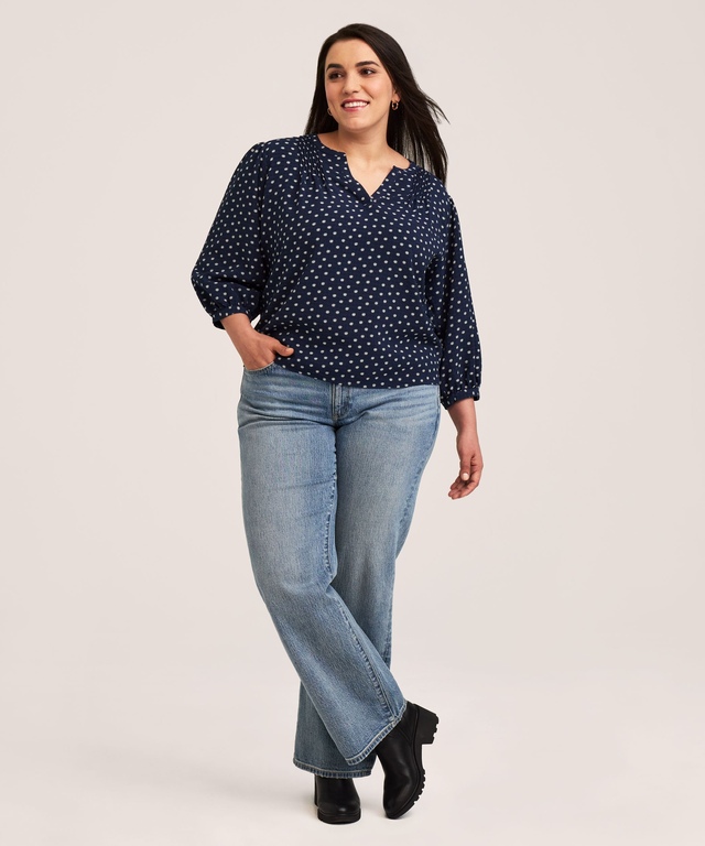 Go for a feminine look wearing our Denver Hayes poet blouse. In a printed fabric for added interest, this design features a face-framing neckline and gently gathered sleeves. The pretty design has a curved hem that looks great over your waistband. It's a blouse that takes you through several daytime activities with ease.