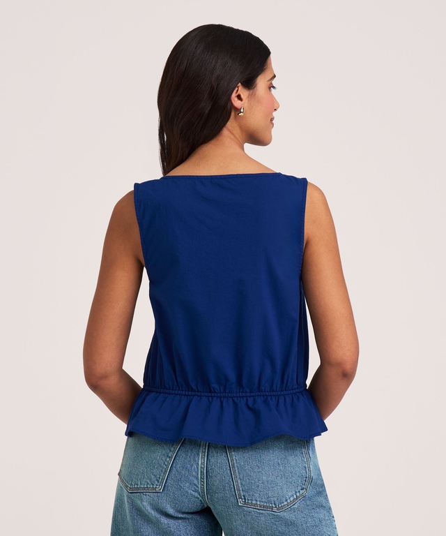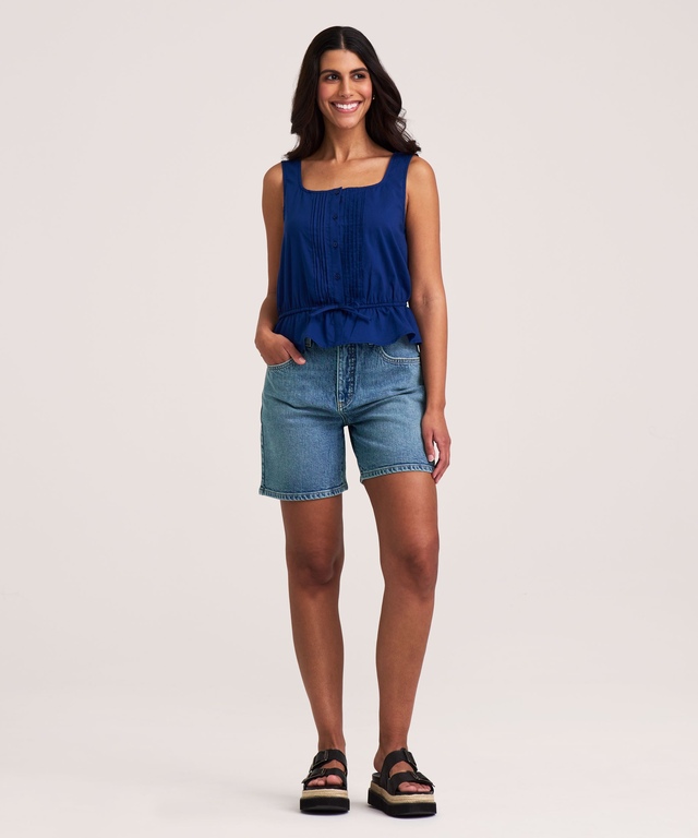 In crisp lightweight poplin, this Denver Hayes tank top offers feminine styling with a pintucked bodice and a frilly peplum hem. Easy to pull on via the buttoned front, you can adust the fit around the waist using the self fabric tie. Whether you wear this style over your denim or atop a summer skirt, it will take you through a full day of events looking good and feeling great.