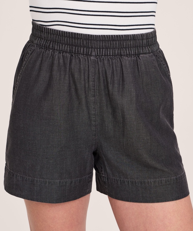 Hot summer weather calls for lightweight and comfortable shorts like this pair from Denver Hayes. Made of soft and silky Tencel fabric, they have an easy pull-on waistband and wide legs cropped at mid thigh. There's a pair of pockets for those small things you can't do without.