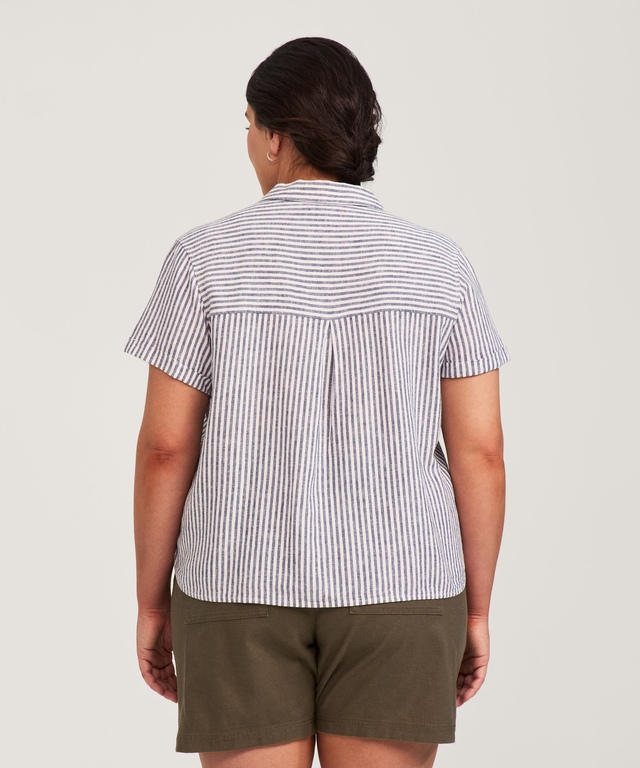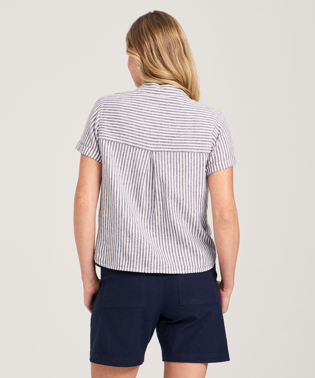 Denver Hayes Women's Short Sleeve Linen Blend Relaxed Button Up Shirt