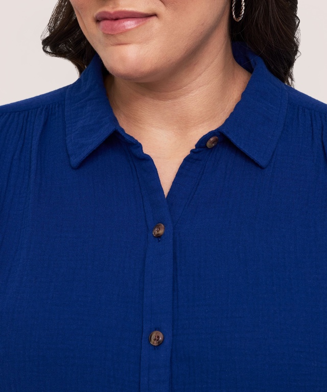 Denver Hayes Women's Short Sleeve Relaxed Double Gauze Button-Up Shirt