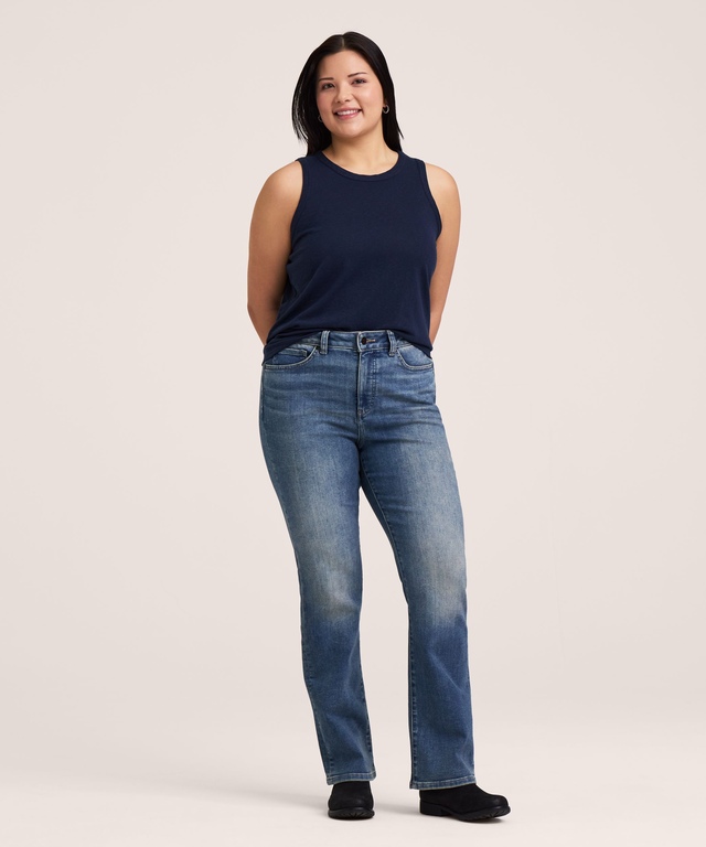 These high rise Denver Hayes bootcut leg jeans are designed with the perfect amount of stretch to contour and shape your curves. The combination of the contoured waistband and innovative tummy slimming pockets hold you in and enhance your figure.