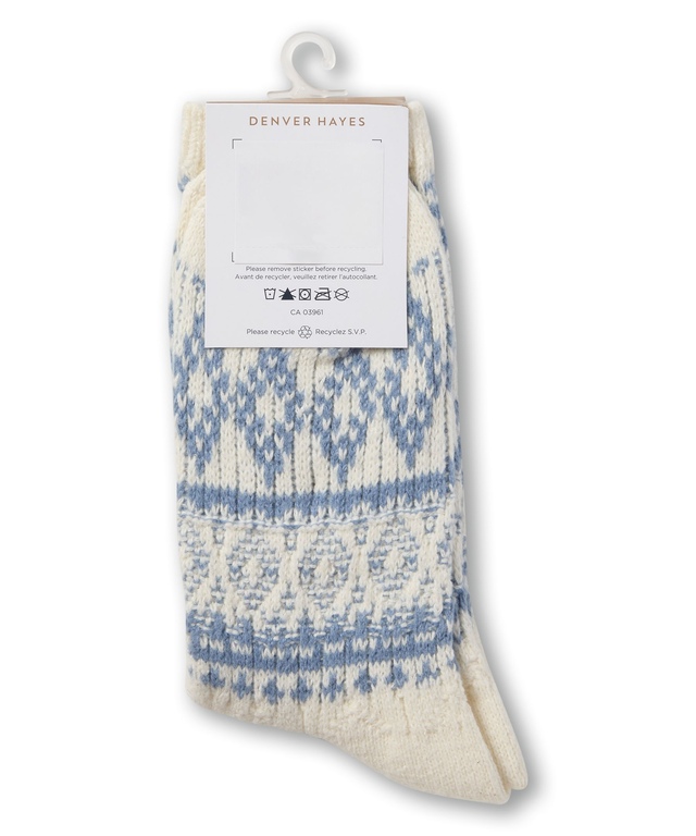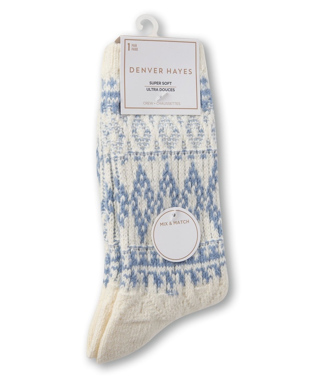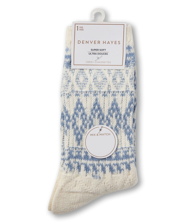 You'll love the feel of these incredibly soft knitted socks from Denver Hayes. Spandex added to the yarn gives them a better, slightly stretch fit. These Fair Isle-patterned socks have chafe-free toe seams and rib-knit cuffs to keep them up where they belong.