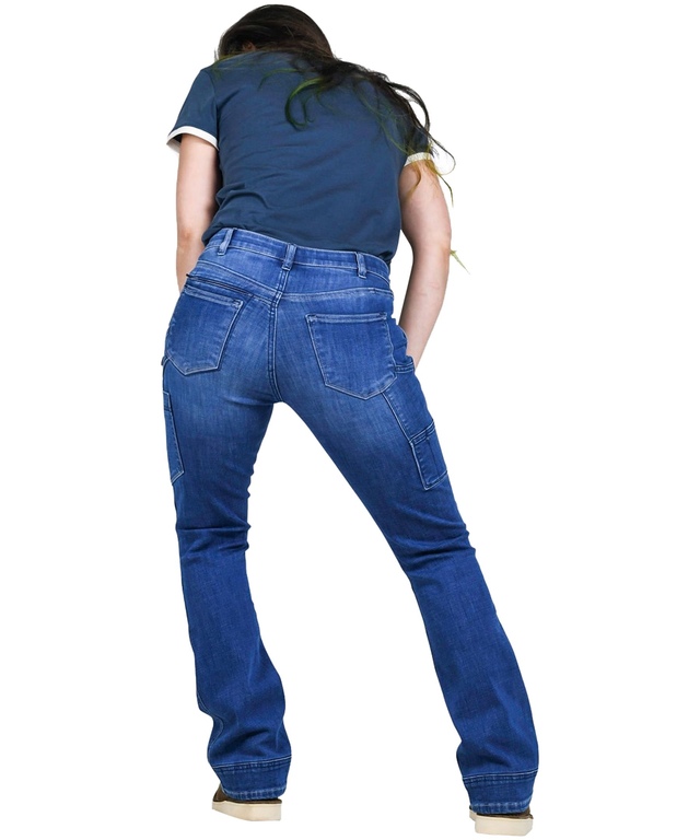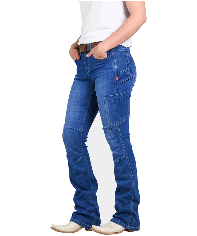 When designing these bootcut pants, Dovetail Workwear worked closely with the radass women of DX Ranch, a fourth-generation Oceti Sakowin ranch on the Cheyenne River Sioux Reservation. Long and lean, these DX bootcut cowgirl jeans are packed with pockets and oh so stretchy. This summer-weight version of our DX Bootcut stays cool in high temps - they're moisture wicking and ultra breathable.