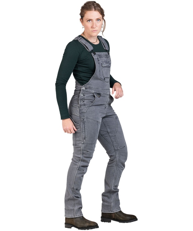 Thanks to the hidden drop seat in these Dovetail Workwear Freshley overalls, winter bathroom breaks just got faster, easier and a whole lot warmer. There's no need to take them off when you have to go. They're made of high tech, all-in-one thermoregulating stretch denim that's tough on the outside, cozy on the inside. They're warm but not bulky so you can easily bend, flex and stretch.
