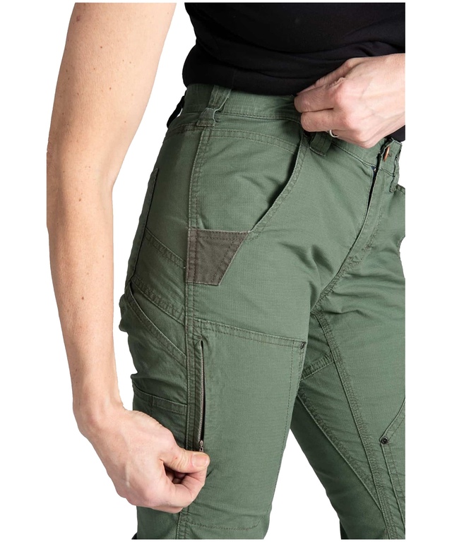 PLACES TO STOW YOUR GEAR: Side-front pockets. Back patch pockets 2 zippered thigh pockets. Hip Slot™. 2 tool loops