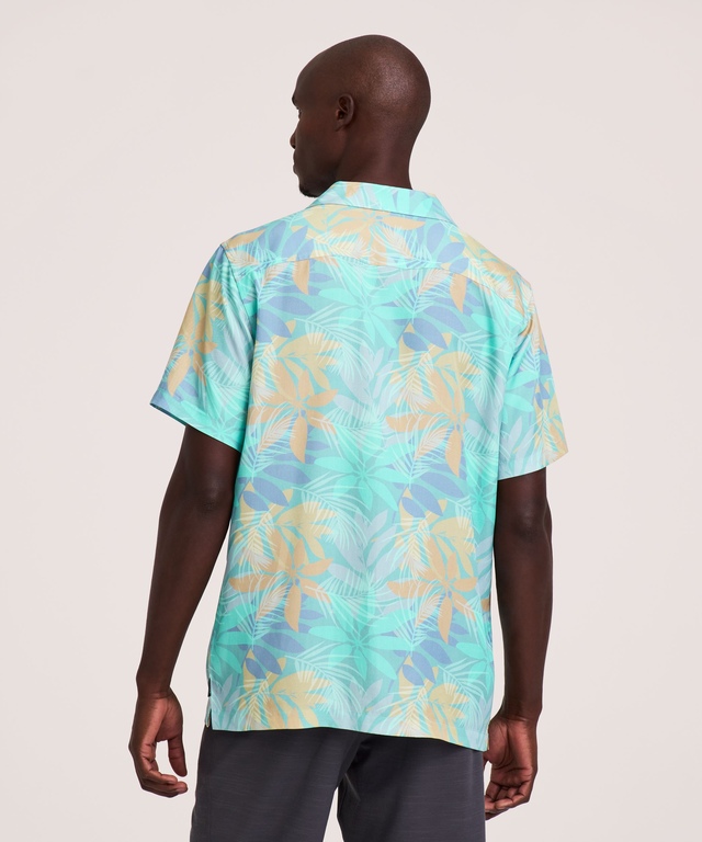 Ideal for your summer activities and vacations, this FarWest short-sleeve shirt features an all-over tropical print. It provides a relaxed fit that makes it perfect for layering and the open neck camp collar is ideal for the warmer weather.