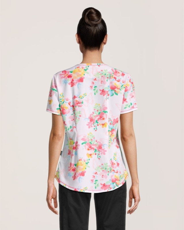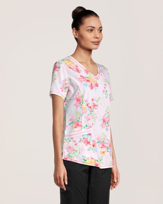 Designed for easy comfort on the job, this Health Pro scrub top features silky-soft fabric with two-way stretch for mobility. The V-neck scrub top offers a contemporary slim fit that's contoured with princess seams and back darts to give it the feminine shaping.