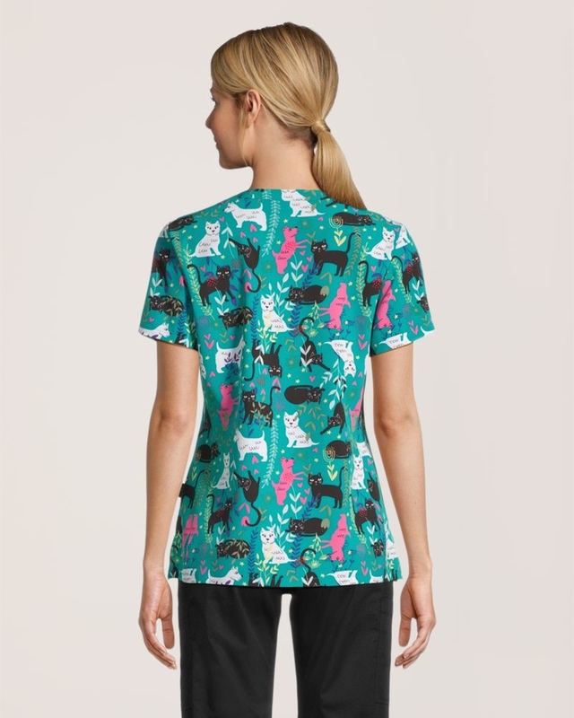 From Health Pro, a V-neck scrub top made of four-way superstretch fabric for maximum comfort and flexibility. The fabric also dries fast by pulling moisture to the surface so your skin feels dry throughout your most active shifts. This scrub top offers a contemporary slim fit that's contoured with princess seams to complement your shape.