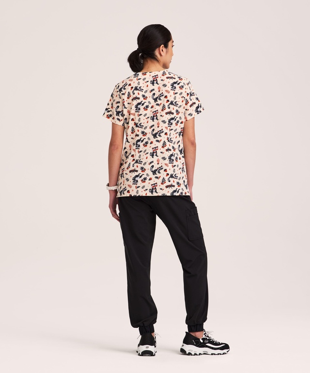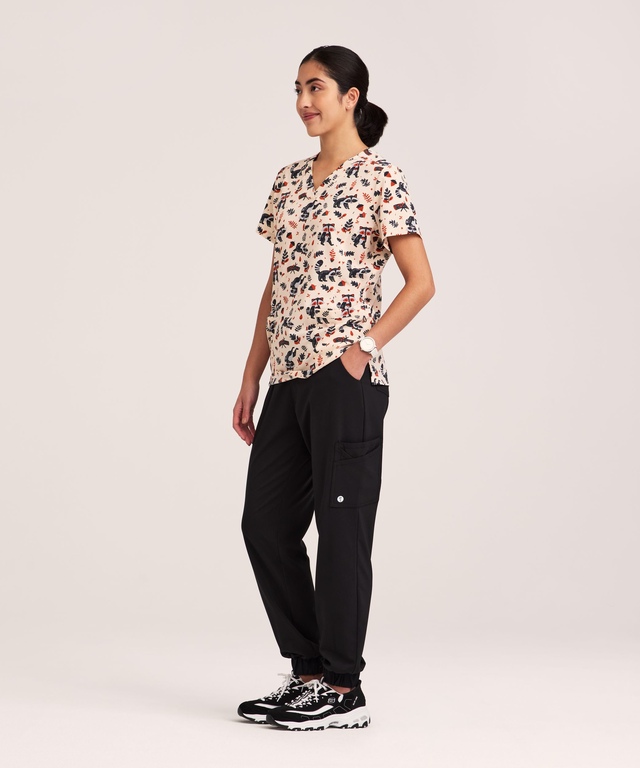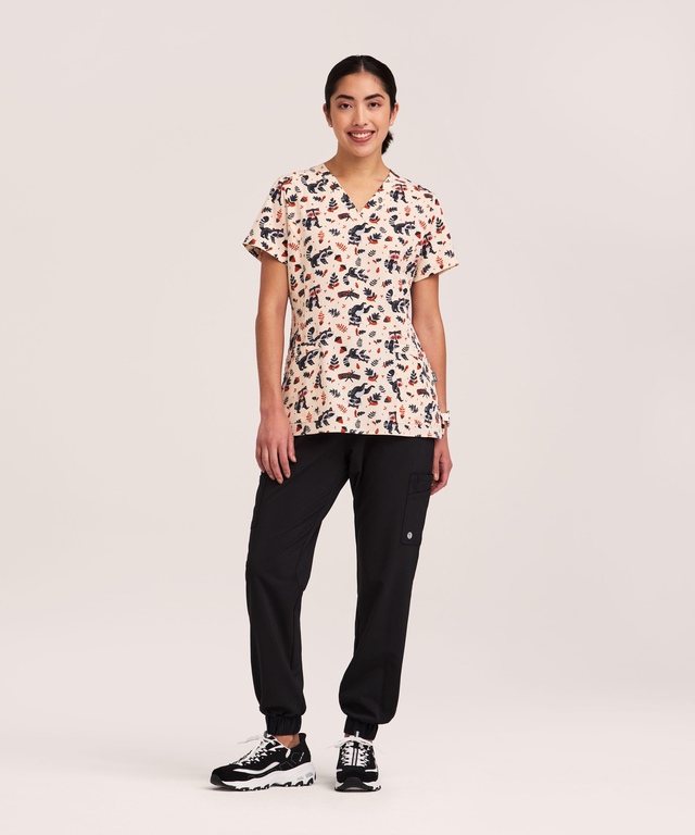 From Health Pro, this V-neck scrub top offers a flattering design and a luxurious feel. The fabric includes subtle two-way stretch for easy movement while you work. Contoured shaping on this scrub top is achieved with princess seams at the front and darts at the back.