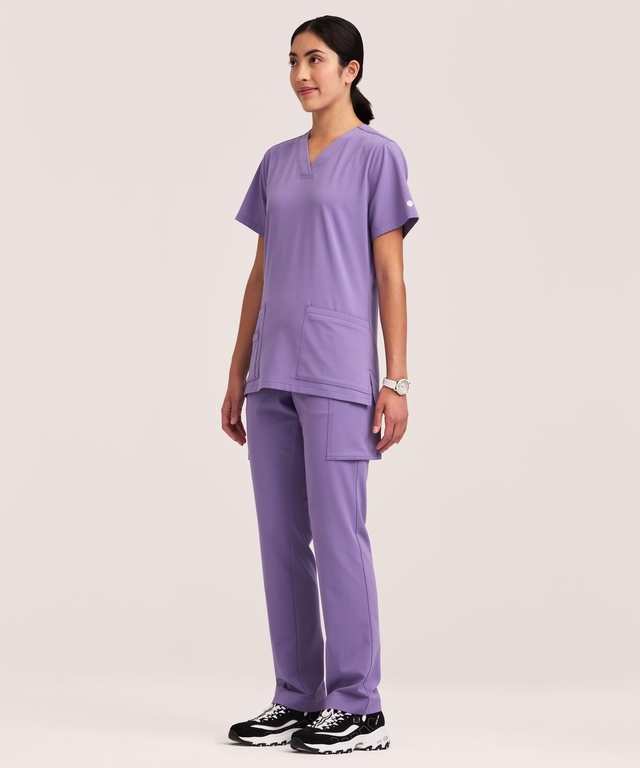 Our solid-colour Health Pro scrub top provides soft comfort for long days on the job. The short-sleeve style offers roomy front pockets so you can keep daily essentials at your fingertips.
