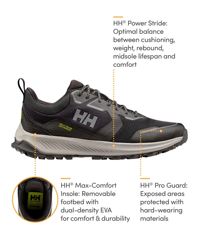HH® SURROUND-GRIP: Multi-directional grip system with carefully engineered lugs providing the best of grip in all phases of the gait cycle. Designed to offer 360° traction on all types of surfaces