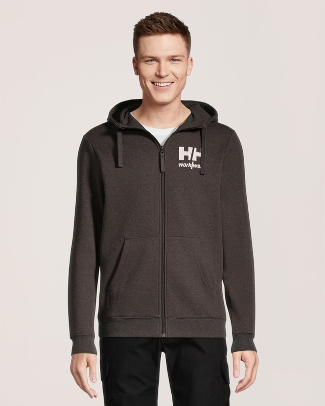 The Helly Hansen Workwear Men's HH Classic Logo Full-Zip Hooded Sweatshirt is comfortable and sustainable. This soft cotton and recycled polyester zippered hoodie offers an excellent fit and feel. Intended for daily wear, it features the Helly Hansen Workwear logo. IDFL-certified with at least 50% Organic Content Standard fibres, this men's hoodie is an eco-friendly choice.