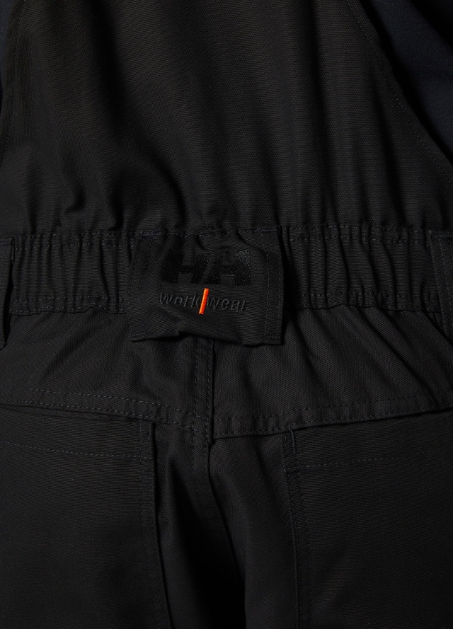 These Helly Hansen Oxford Service unlined bib overalls are constructed for strength and durability on the job. They have elastic in the waist to provide a good fit and a crotch gusset for extra freedom of movement. Plenty of pockets allow you to keep your work essentials at your fingertips. These overalls pay special attention to the legs. Reinforced, articulated knees add strength and agility, and knee pad pockets can be accessed from inside.