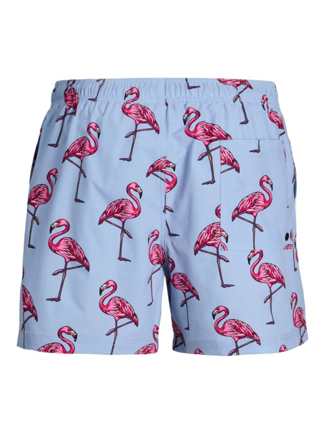 Get ready for lounging by the water with these swim trunks from Jack & Jones. With a pattern of pink flamingoes, the non-stretch fabric is made for comfort. These Maui Mini Stripe trunks are made with at least 50% recycled material to help save our natural resources and reduce waste.