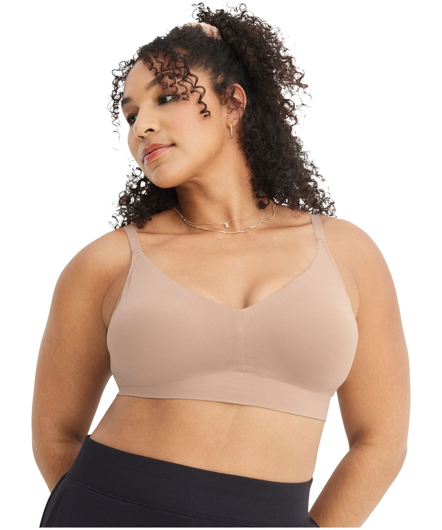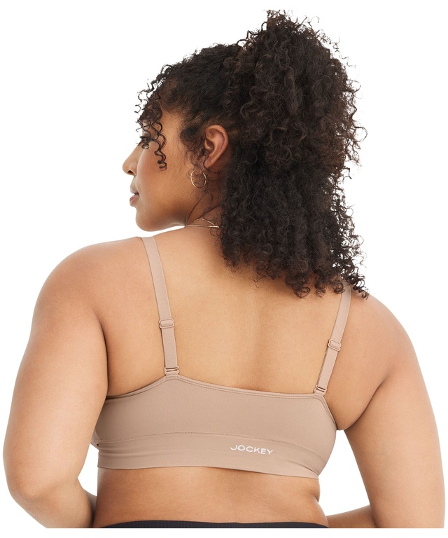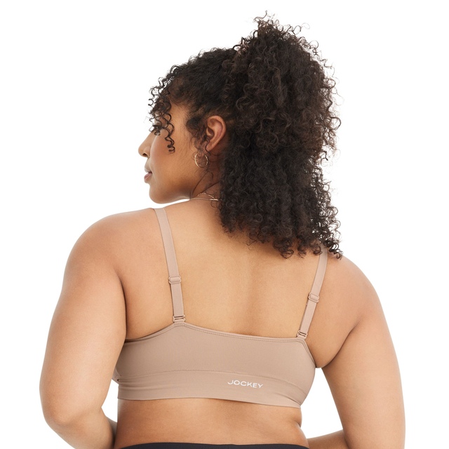 Built for comfort and natural shape enhancement, the Jockey®® Light Lift Seamfree® Bralette is made with stretchy microfibre fabric. The wire-free style combines soft foam cups and sewn-in bump pads for a gentle lift. This is a comfortable Seamfree® design for a smooth fit. The wide ribbed underband on this bralette offers secure support and adjustable straps convert to crisscross over the back.
