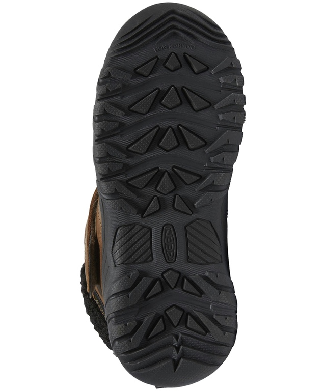 Staying active this cold season has never been this easy with the KEEN Kids' Kootenay IV Mid Waterproof Insulated Non-Slip Winter Boots. Featuring a slip-on design with an adjustable strap for a no-fuss fit, these waterproof boots have the iconic KEEN toe bumper to keep little feet protected. The high-traction rubber outsole leaves no trace or imprint while indoors and delivers all the grip they need. These fleece-lined boots are perfect for rainy days on the playground and everyday adventures around town.