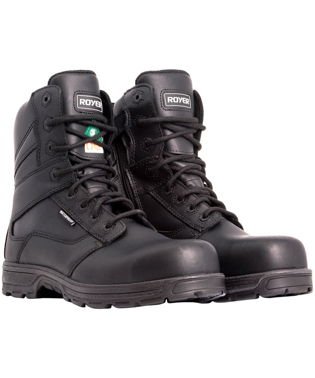 From LP Royer, ultra-light and metal free work boots in full-grain leather. Equipped with a waterproof membrane, they feature a side zipper that makes them super easy to get on and off. These safety boots meet CSA Grade 1 standards with composite toes and plates.