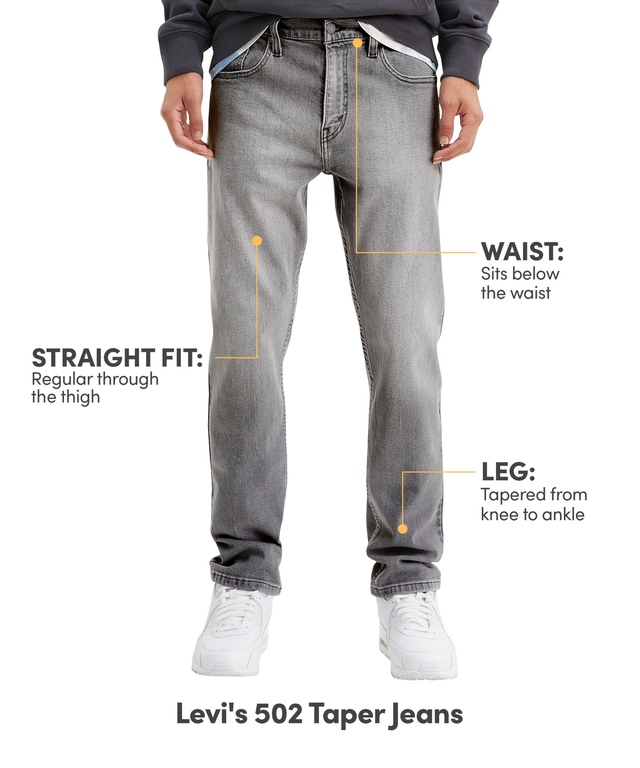 Levi's® 502™ Taper Fit Jeans are their most versatile fit — one that looks good on just about anyone. Cut on the slimmer side with a tapered leg opening, they're ideal for showing off those new shoes. The classic taper for every day is a refined, modern alternative to straight jeans. Made with Levi’s® Flex advanced stretch technology engineered to deliver maximum flex and optimum comfort.
