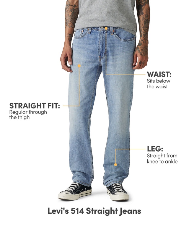 Levi's 514™ Straight jeans offer a fit that's not too relaxed and not too straight. With their versatile, streamlined silhouette, they'll look just as good with a tee as they do with a button-up shirt.