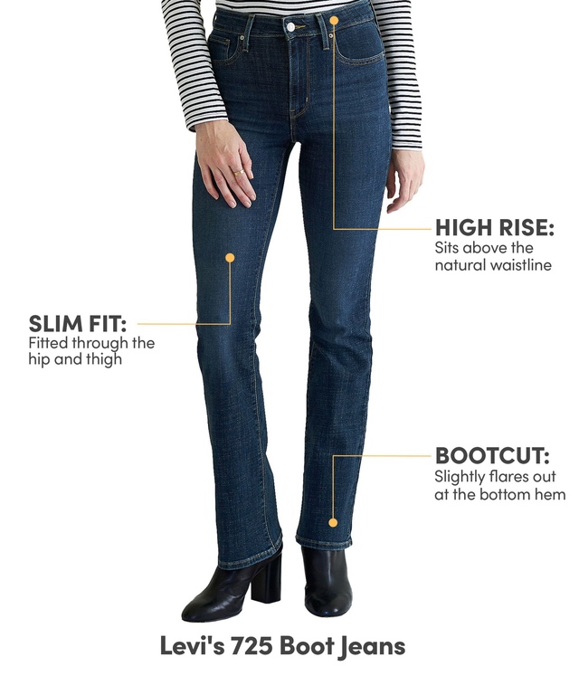 Levi's® 725 is designed to flatter, hold and lift. A classic leg-lengthening silhouette constructed for timeless style and all-day comfort. Levi's® Sculpt with Hypersoft is super-soft for enhanced comfort with supportive stretch.