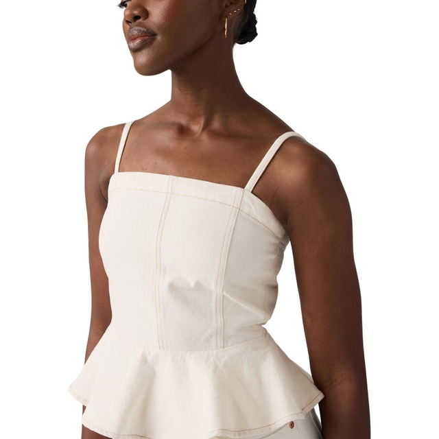Embrace timeless style and comfort with Levi's Women's Anderson Flounce Top. Crafted from 100% cotton, this women's top offers a standard fit that is perfect for any casual occasion. Its versatile design makes it a must-have addition to any wardrobe.