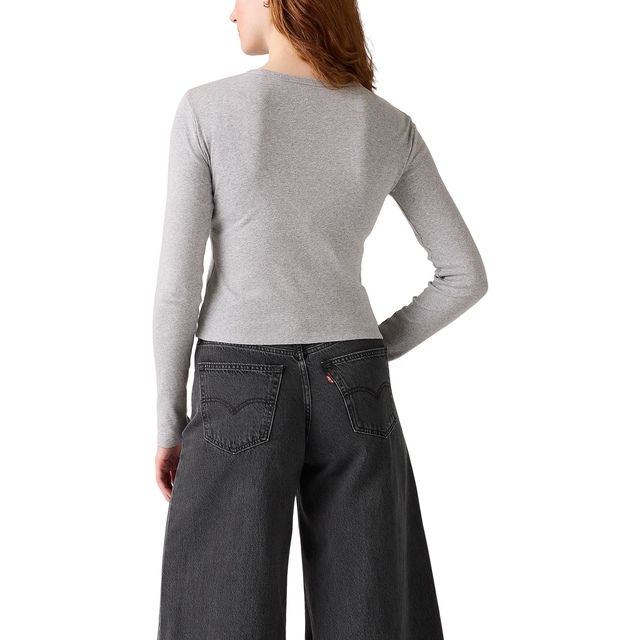 Embrace the '90s vibe with Levi's Women's Rickie Long Sleeve T-Shirt. This stylish top features a body-hugging fit and a sparkling Levi's® graphic, offering both comfort and a touch of glamour. Perfect for adding a retro flair to your wardrobe.