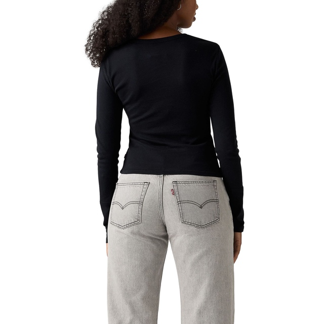 Embrace a touch of '90s nostalgia with the Levi's Women's Rickie Long Sleeve T-Shirt. Featuring a body-hugging fit and a sparkling Levi's® graphic, this stylish top offers both comfort and a flattering silhouette. Perfect for adding a bit of retro flair to your wardrobe.