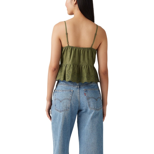 The Levi’s Cora sleeveless blouse is an easy way to add some romance to your warm weather wardrobe. The women’s sleeveless blouse features a diamond pattern woven over the bodice and eyelets on the ruffled hem for eye-catching style. It’s made from soft, breathable cotton for cool comfort in the spring and summer months.