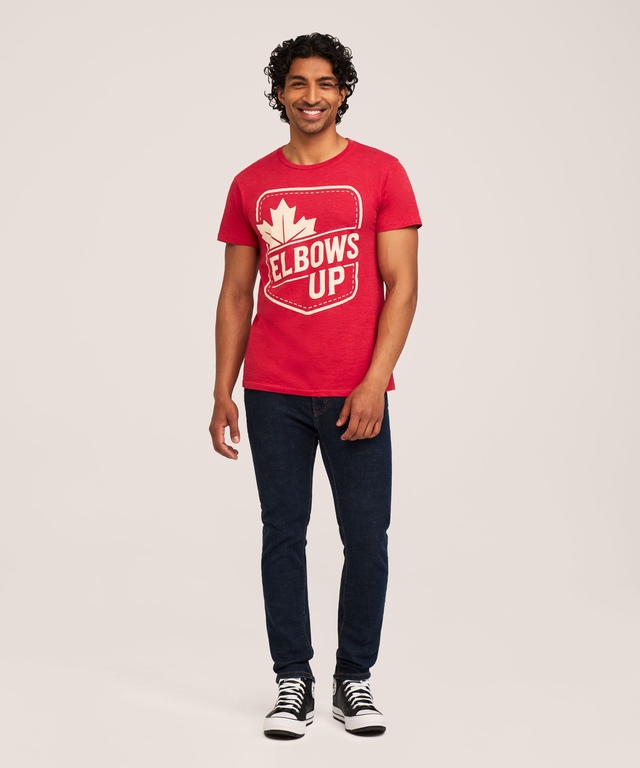 Show your Canadian pride with a touch of playful spirit in this Logo T-Shirt Men's Elbows Up T Shirt. This tee is perfect for anyone who loves Canada and a bit of fun. Crafted for comfort and style, it is an easy way to add a pop of colour and personality to your casual wardrobe. Whether you are cheering on your favourite team or just want to showcase your Canadian roots with a twist, this t-shirt has you covered.