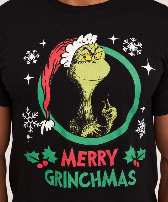 The Logo T-Shirt Men's Holiday Merry Grinchmas T-shirt is your basic crewneck and short-sleeve tee. Featuring soft and breathable fabric for a comfortable experience and feel against the skin. The T-shirt's versatility allows you to style it in various ways and play around to create many different looks.