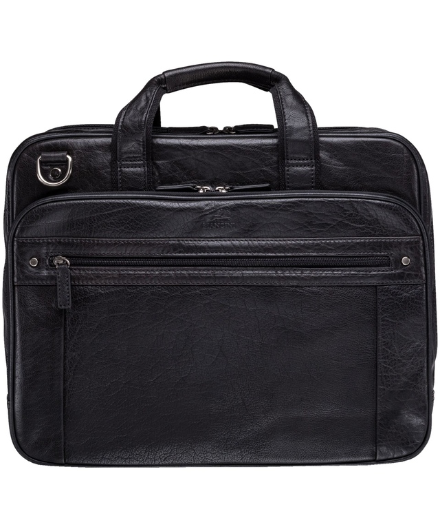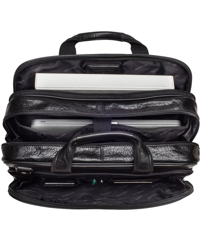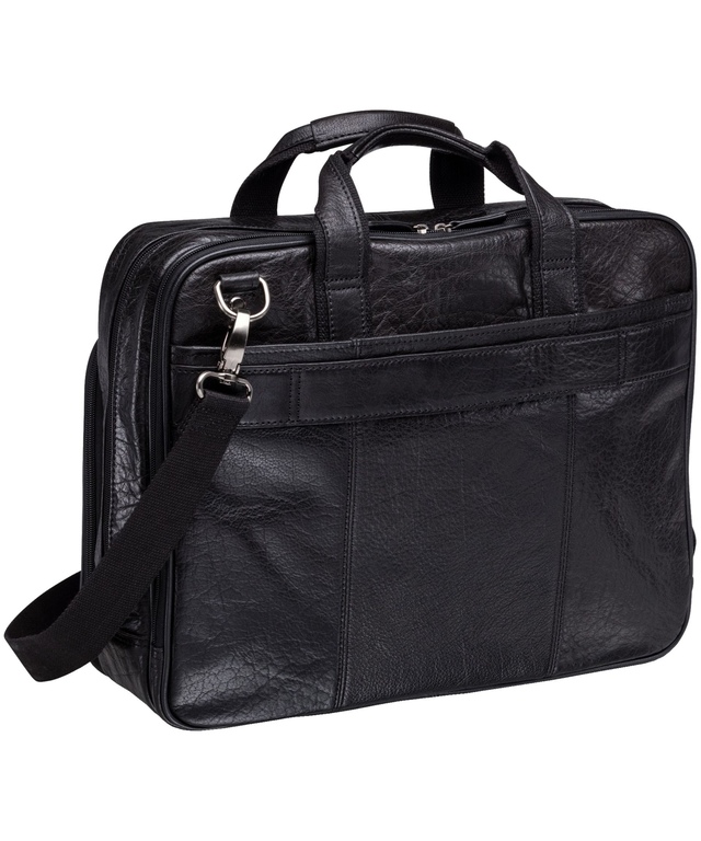 From the Mancini Arizona Collection, this briefcase is hand crafted in vegetable-tanned buffalo leather. It features a main zippered compartment with separate tablet and laptop padded sleeves to keep your devices secure and protected. A rear compartment holds all your documents and folders and a front organizer keeps small personal items at your fingertips. The rear is equipped with a zippered pocket and an attach-a-bag strap to piggy-back the briefcase on other baggage.