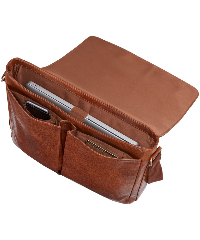 From the Mancini Arizona Collection, this messenger bag is hand crafted in vegetable-tanned buffalo leather. It features a compartment equipped with separate laptop and tablet padded sleeves to keep your devices secure and protected. It has a large storage compartment and 2 separate front pockets. The rear is equipped with a pocket and an attach-a-bag strap to piggy-back the briefcase on other baggage.