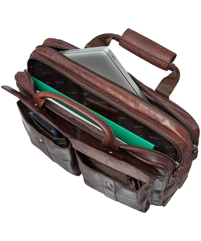 Our Buffalo Collection represents the fusion of contemporary styling with the raw urban look of oily buffalo leather. Featuring padded compartments to protect your tablet and laptop, this functional collection will fulfill all your business and personal needs with style. This laptop briefcase features a zippered compartment with a separate laptop padded sleeve to keep your device secure and protected. An organizer with multiple practical pouches and a RFID secure pocket equipped with the latest RFID wave blocking technology. The rear is equipped with a zippered pocket and an attach-a-bag strap to piggy-back the briefcase on other baggage.