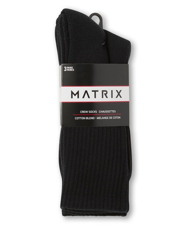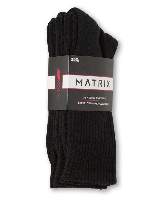 These Matrix half cushion crew sport socks are designed for long-wearing comfort. Smooth toe seams won't cause chafing, while arch panels and sole cushioning provide underfoot support. We offer these crew socks in a pack of three pairs for easy shopping.
